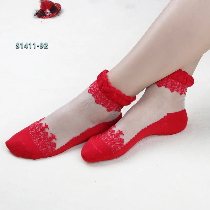 Носки женские кружевные в сеточку, пикантные мягкие удобные прозрачные шелковые эластичные вязаные с оборками, забавные прозрачные носки до щиколотки, 1 пара = 2 шт., 220