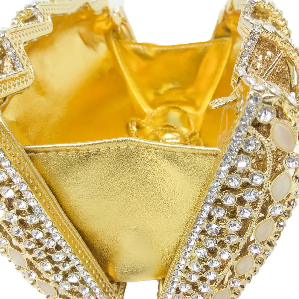 Женский Вечерний Клатч Boutique De FGG, золотистый ажурный клатч с камнями и бусинами, Свадебный Кошелек-минодьер с камнями для невесты