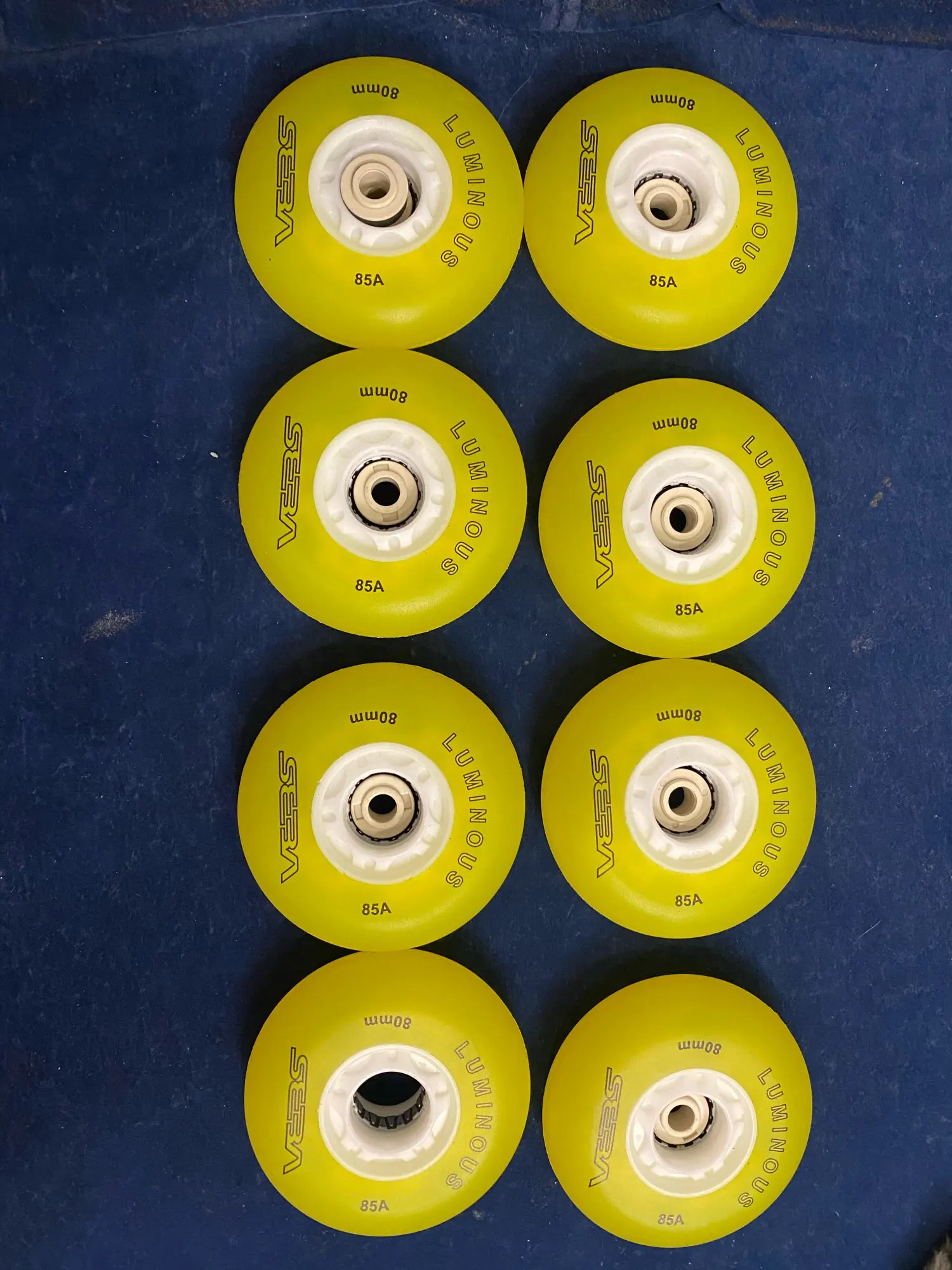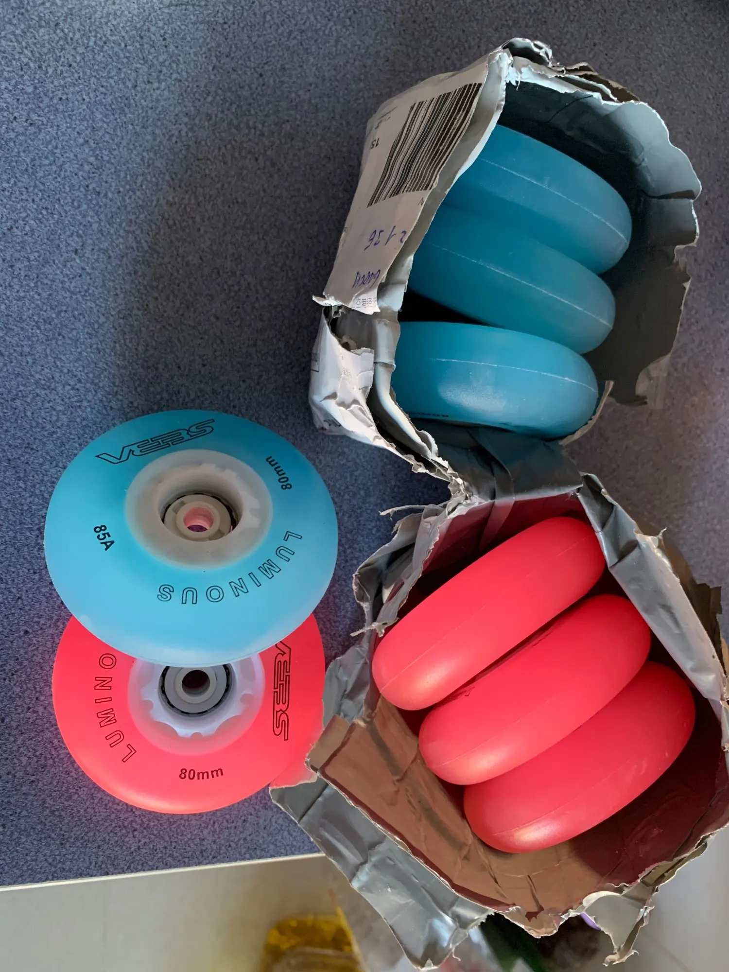 Отримав в Україні за 16 днів! Доставка службою Міст Експрес. Одразу відгук не писав, хотів перевірити в прокаті. Накат гарний, світяться досить яскраво. По зносостійкості поки не ясно, але сподіваюсь все буде гуд, бо за годину інтенсивного катання по коупнозернистому асфальту зносу нема.