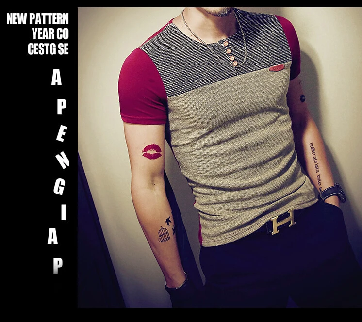 mens patchwork t shirt;plus size t shirt for men