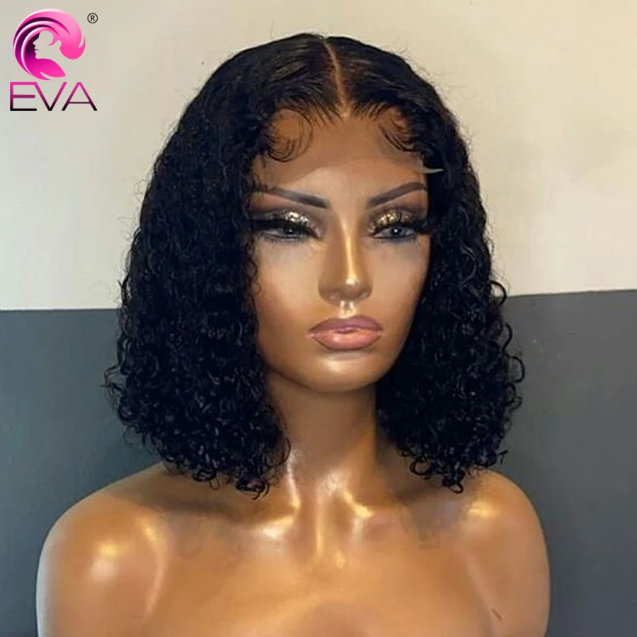 Парик из ЭВА 360 на сетке спереди, парики из вьющихся волос спереди на сетке, предварительно выщипанные короткие волосы, парики из человеческих волос Боб для женщин, вьющиеся волосы, парик из Джерри Боба