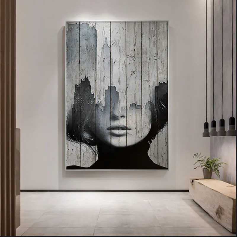 Абстрактные девушки, серый силуэт, холст, живопись, плакаты и печат...