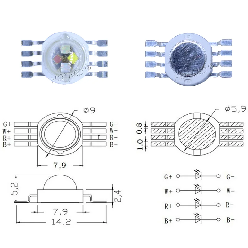 Светодиодный Диод, 10-100 шт., 45 мил, RGBW, 8 контактов, светодиодный чип высокой мощности, 4-12 Вт, цветные четырехжильные источники, сделай сам, для светодиодного сценического освещения