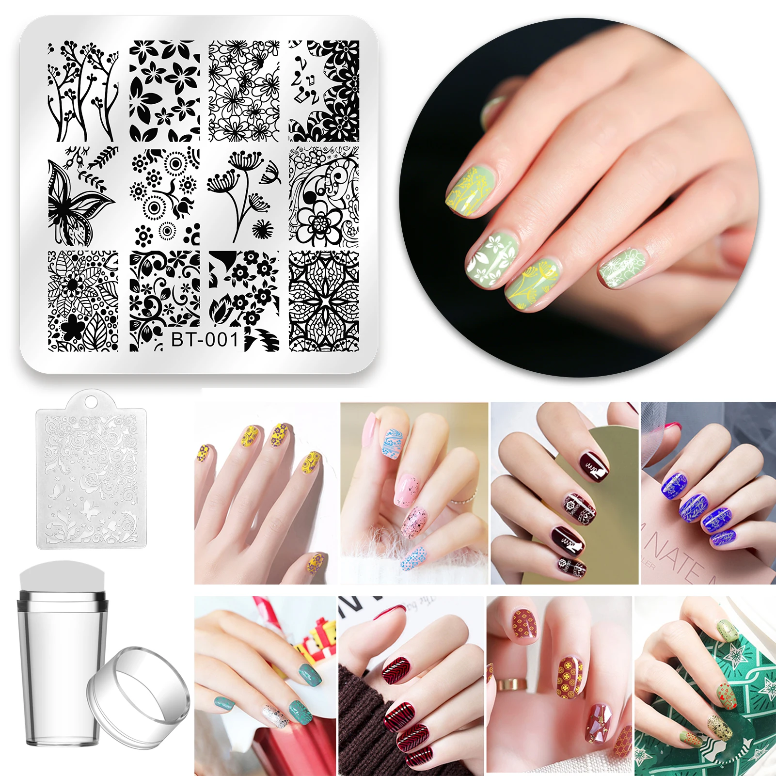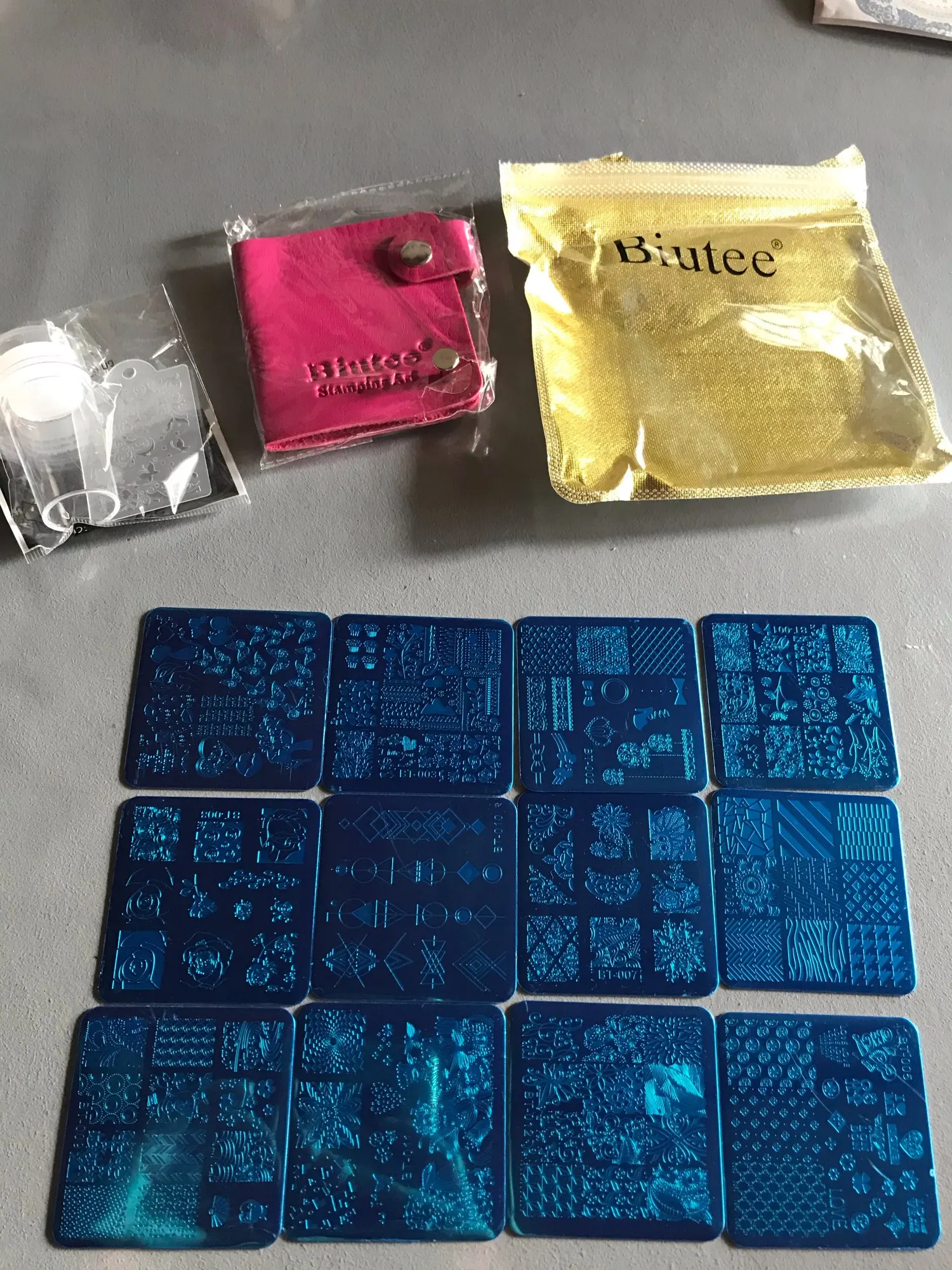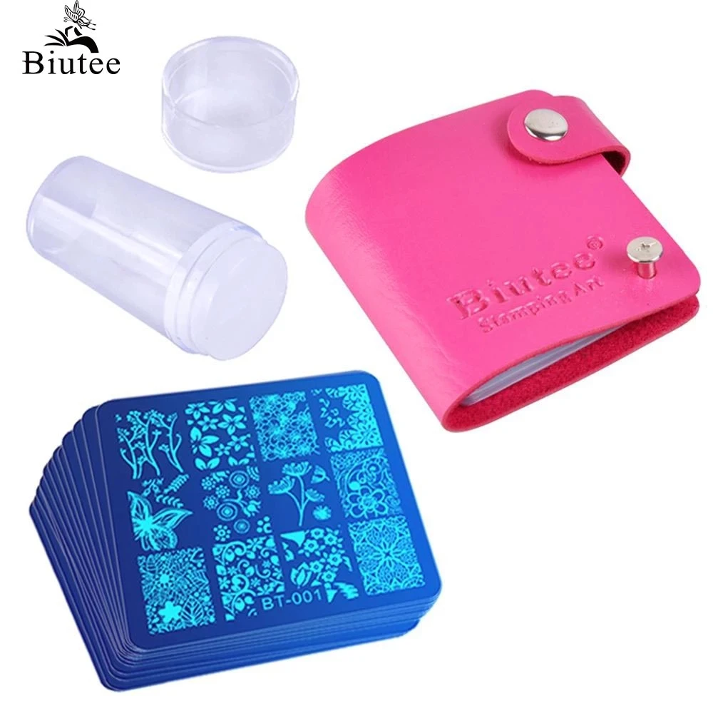 Biutee 12 шт. ногтей штамповки Таблички набор 12 ногтей маникюр Таблички + 1 Польский Стампер + 1 Скребки DIY Stamp шаблон ногтей инструмент Наборы