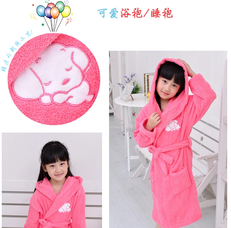Зимние хлопковые банные халаты для девочек и мальчиков с капюшоном, зимний и весенний халат, полотенце, флисовые пижамы, Детская одежда для сна с мультяшным рисунком