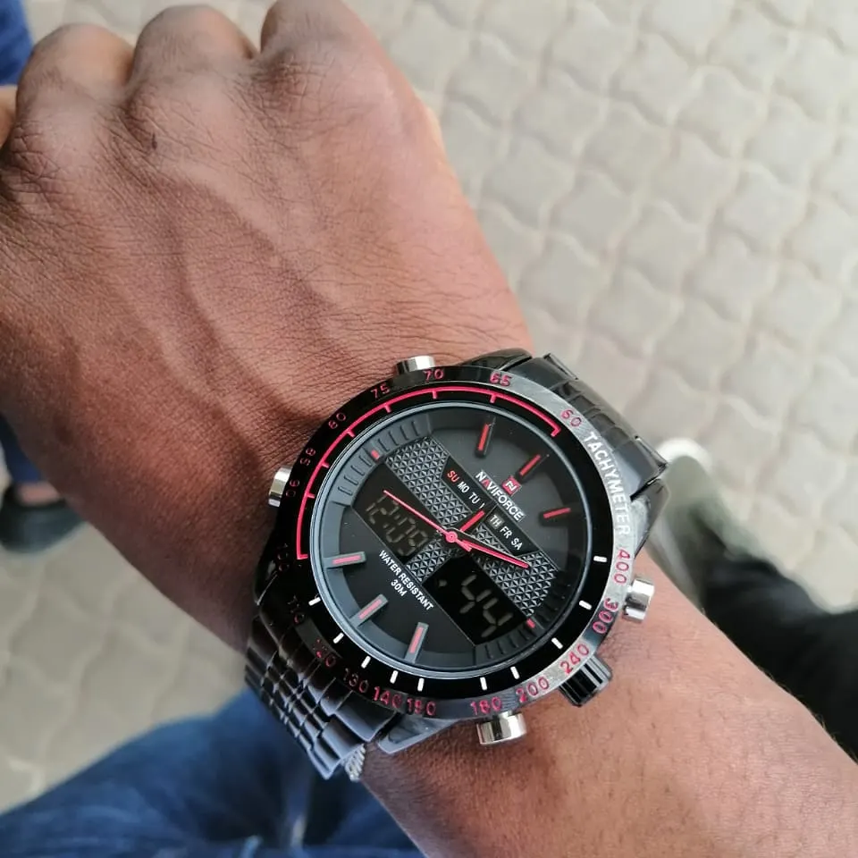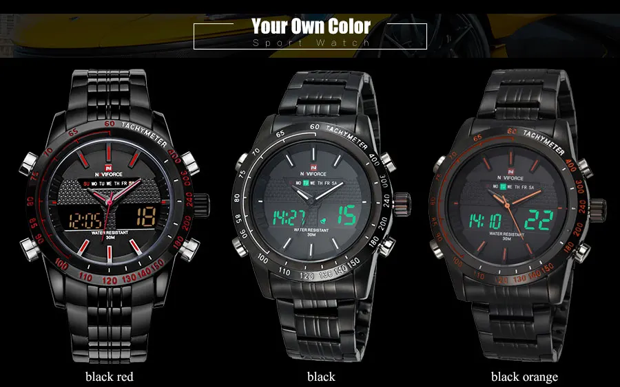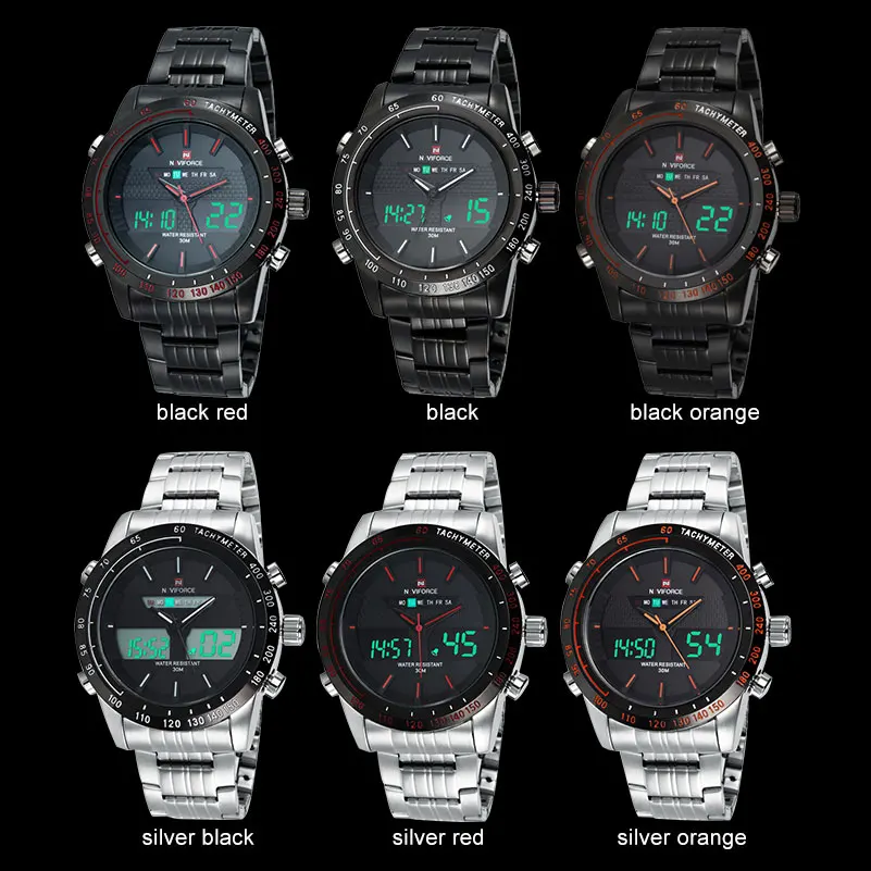 Часы NAVIFORCE мужские, спортивные, водонепроницаемые, из нержавеющей стали, аналоговые, цифровые, светодиодный, двойное время