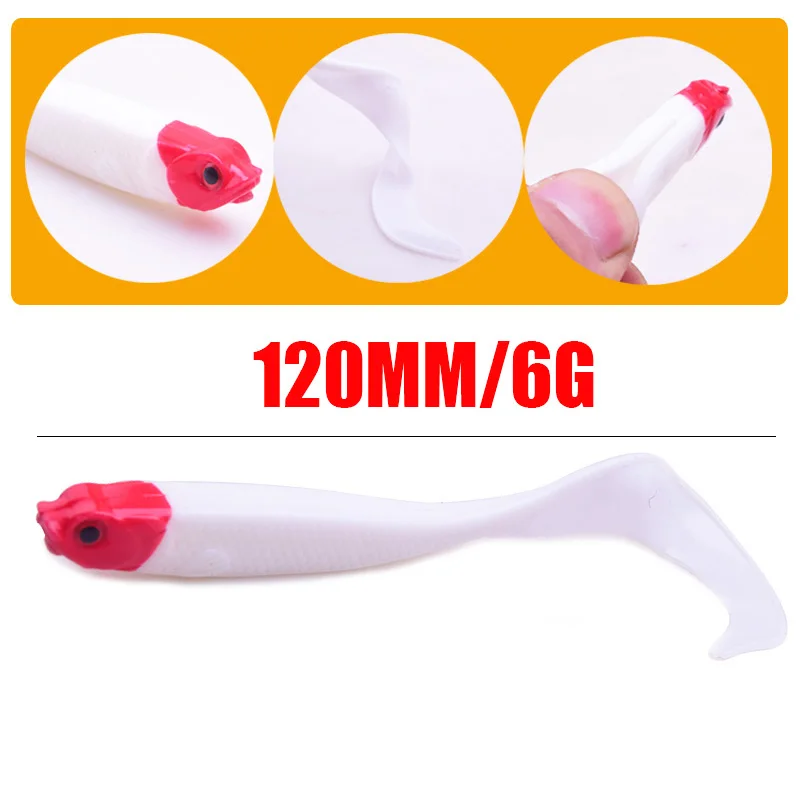 Реалистичные приманки с длинным хвостом, 1 шт., мягкие приманки 12 см, 6 г, искусственный силикон, 3D-глаза, приманка для ловли окуня, щуки, джиг, воблеры, снасти