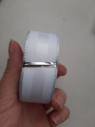 Красивая лента, аккуратно упакована. Вместо 9м14см отмерели 9м55см.спасибо!!! Буду ещё заказывать.