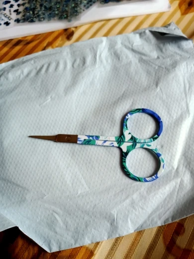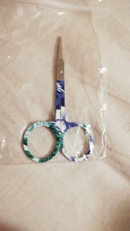 Доставка очень быстрая. Сами ножницы производят впечатление хлипковатых, но выглядят красиво. Лезвия у них прямые и только к концам есть небольшой намек на закругление, кончики слегка смотрят вверх. Брала, чтобы при маникюре отрезать фольгу, слайдеры, ленты для дизайна и не тупить хорошие маникюрные. Для этих целей очень хорошо подходят. Если планируете обрезать кутикулу или стричь ногти, лучше взять проверенные марки с качественной заточкой.