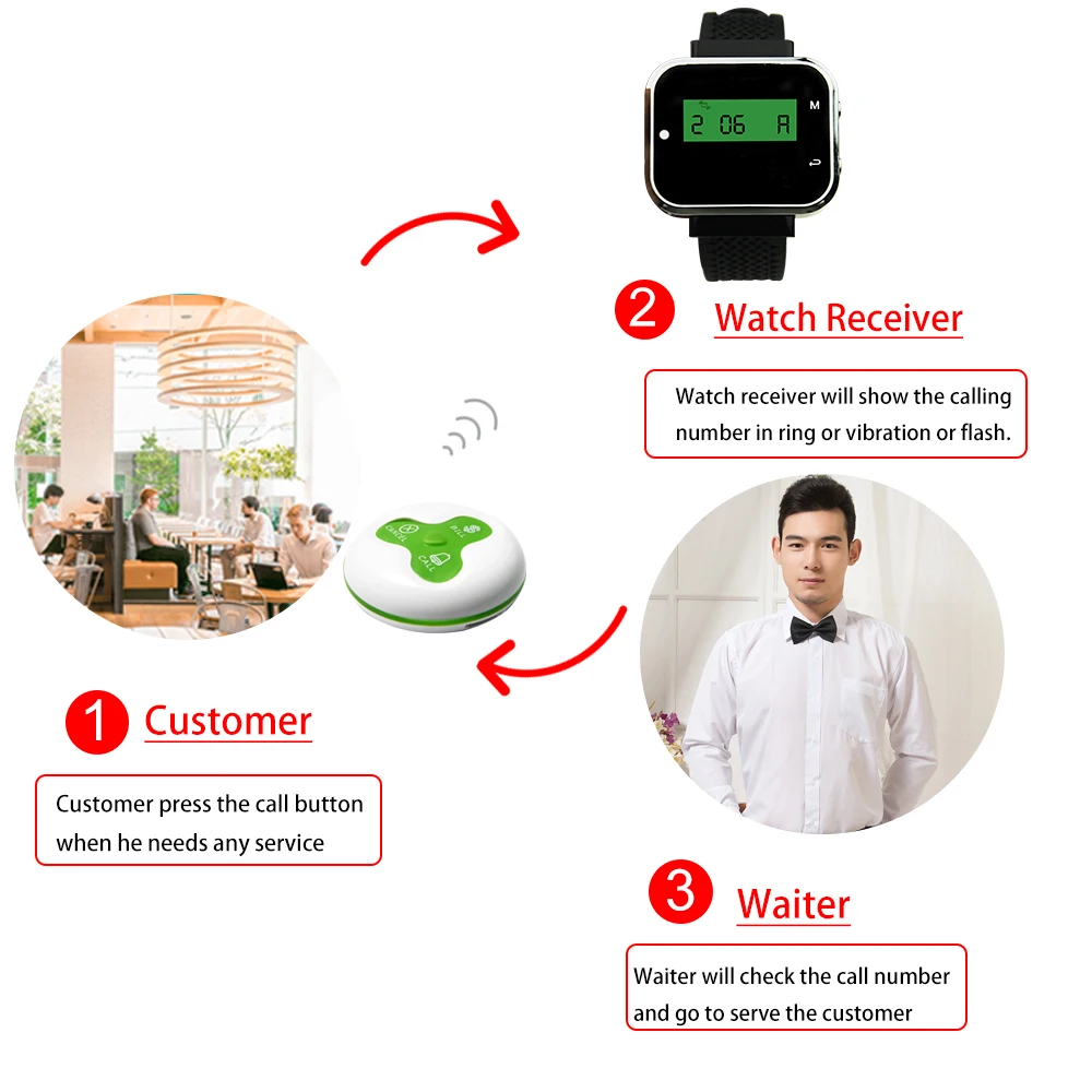 wireless calling systemsconsist of wireless calling buttons and watch pager receiver