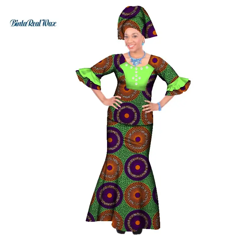 Новинка Дашики женские длинные платья с головным платком базин бога...