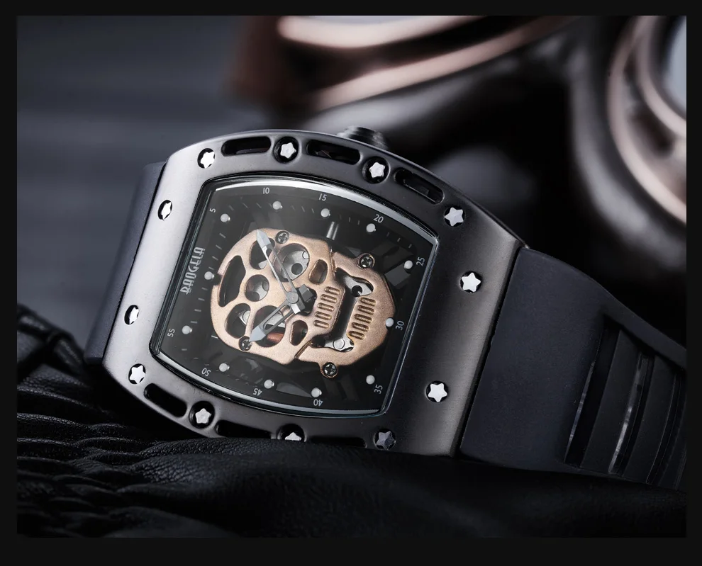Часы BAOGELA Мужские кварцевые с пиратским черепом, спортивные брендовые водонепроницаемые в стиле милитари, с силиконовым ремешком