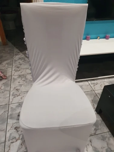 Эти чехлы на стулья из спандекса с растягивающимся покрытием подходят для большинства банкетных и обеденных стульев.