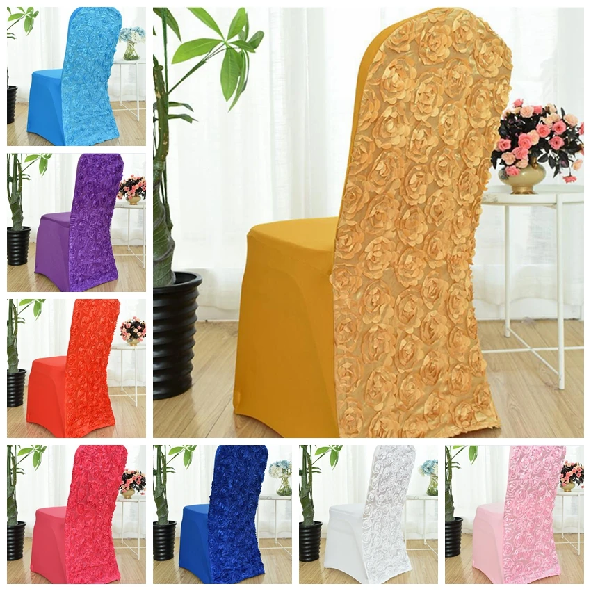 Различные цвета спандекс чехлы для стульев стул с розочками крышка Роза цветок Дизайн лайкра для свадьбы банкета отеля украшения
