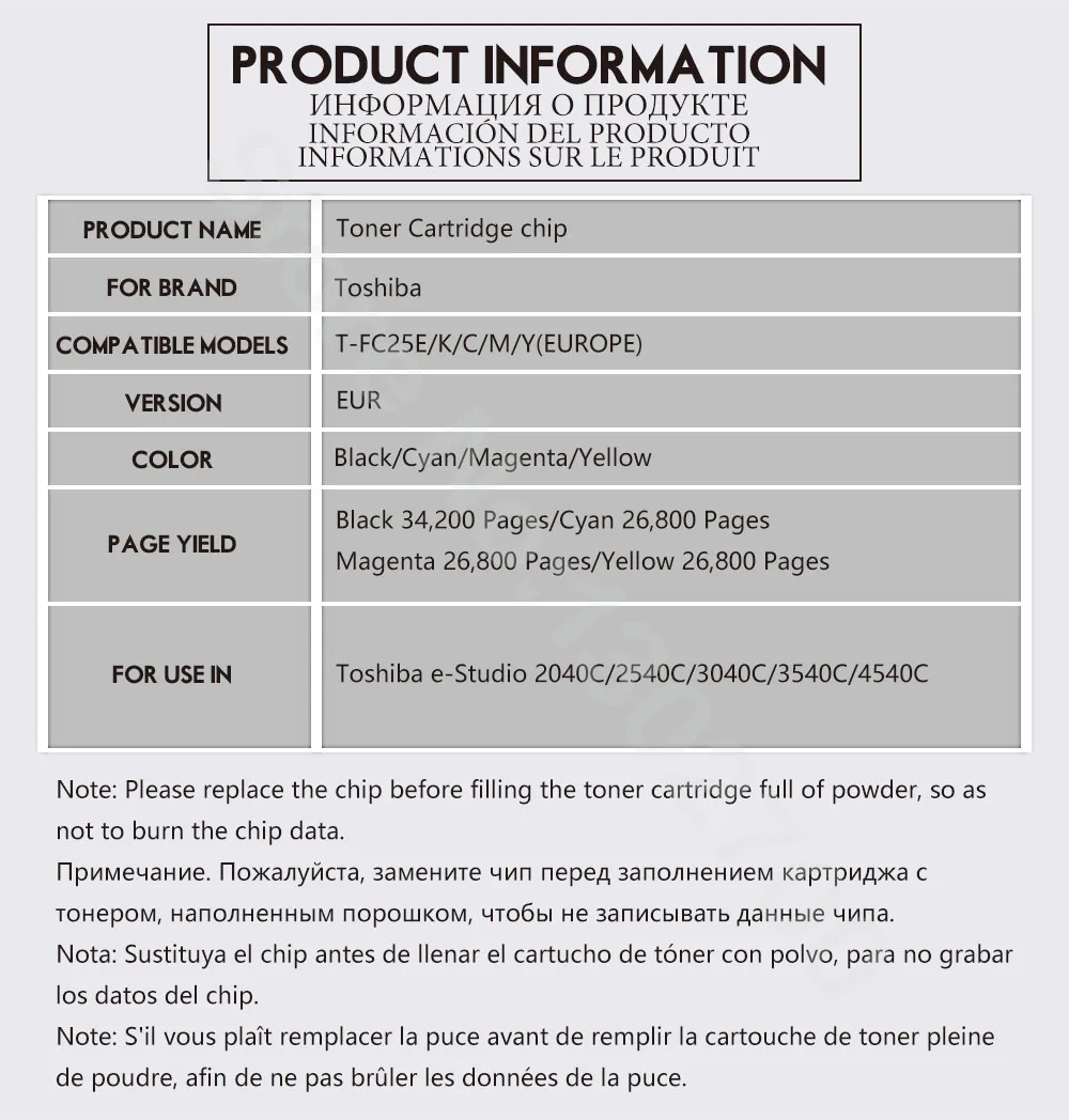 T-FC25E FC25E FC25 тонер-картридж чип для Toshiba e-Studio 2040C 2540C 3040C 3540C 4540C 2040 2540 3540C порошковый сброс ЕС