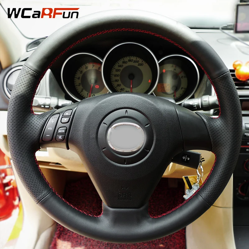 Чехол для руля WCaRFun, прошитый вручную, из искусственной кожи, для старой Mazda 3, Mazda 5, Mazda 6 2003-2009