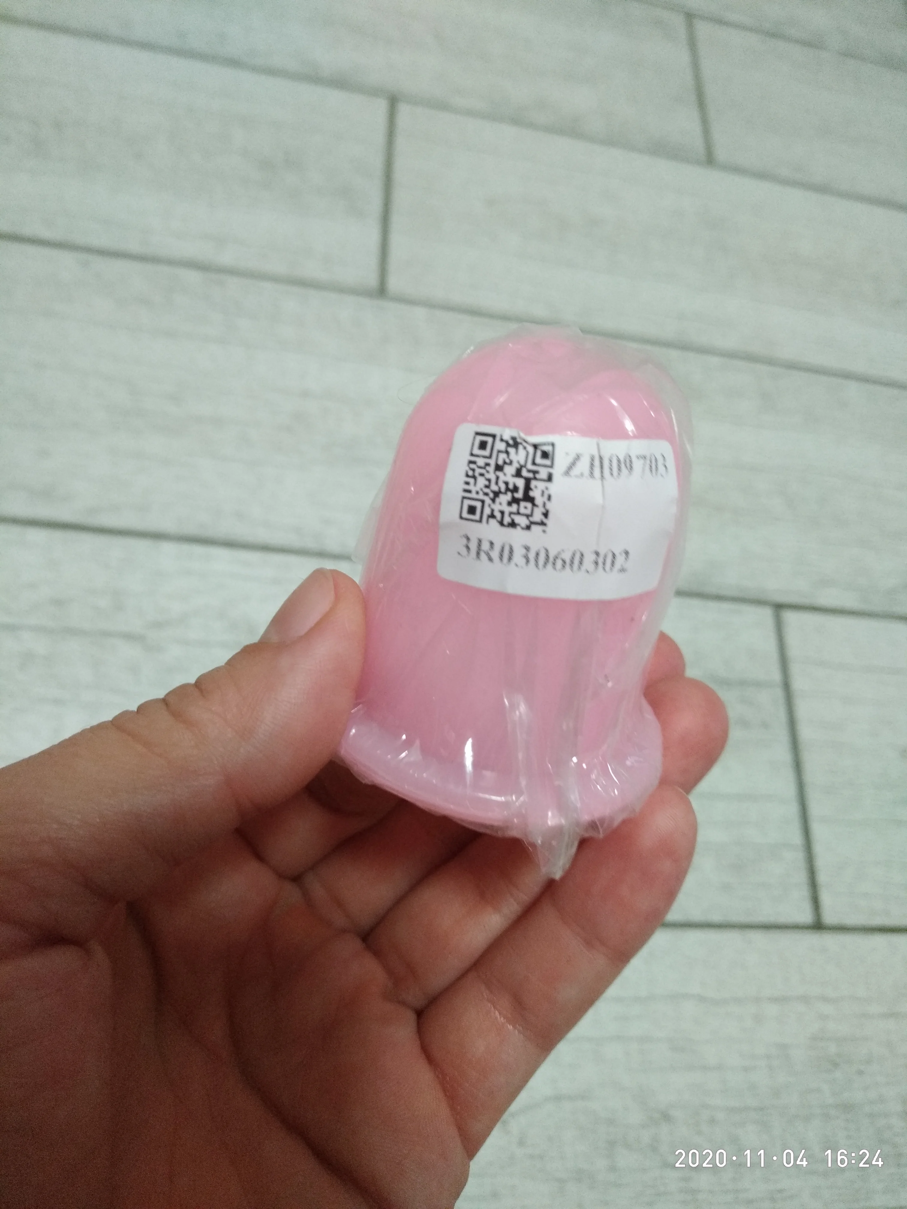 Доставка 30 дней. Всё доехало целым. Баночка из плотного толстого силикона (или резины). Покупалось не себе, так что как в использовании сказать ничего не можем. Но тянет хорошо. Присасывается отлично. Размеры смотрите на фото. Рекомендуем.