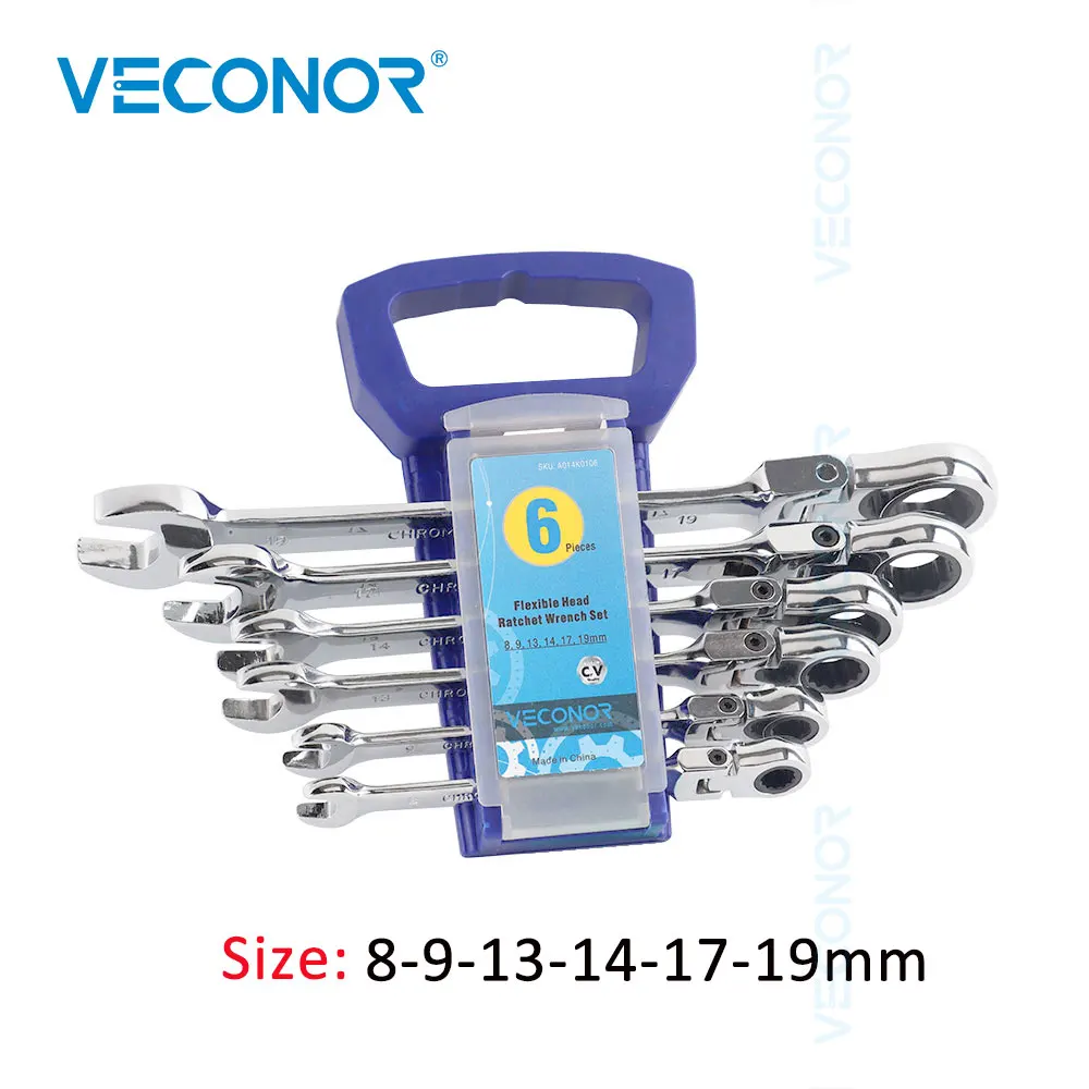 VECONOR 6 шт. Трещоточный ключ набор 8-9-13-14-17-19мм Размер зеркальная полированная 72 т трещотка головка гибкий гаечный ключ гаечные ключи Инструменты Набор