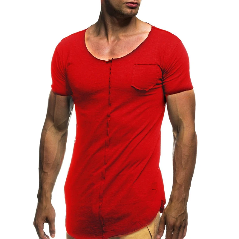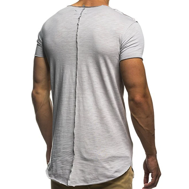 Футболка мужская длинная с коротким рукавом, тенниска приталенная с круглым вырезом, модная майка для фитнеса, уличная одежда в стиле хип-хоп, однотонная, лето 2021