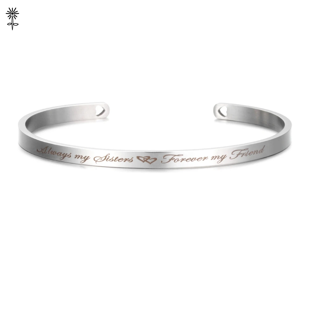 Браслет-манжета из нержавеющей стали, с гравировкой вдохновляющих слов, ширина 4 мм, 3 цвета, покрытие SL-006