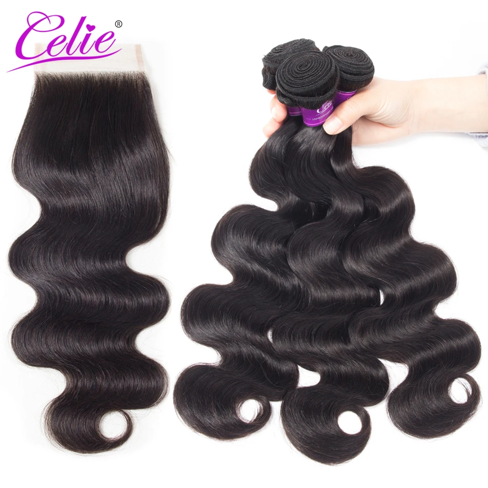 Celie волосы бразильские человеческие пучки волос с закрытием Remy ...