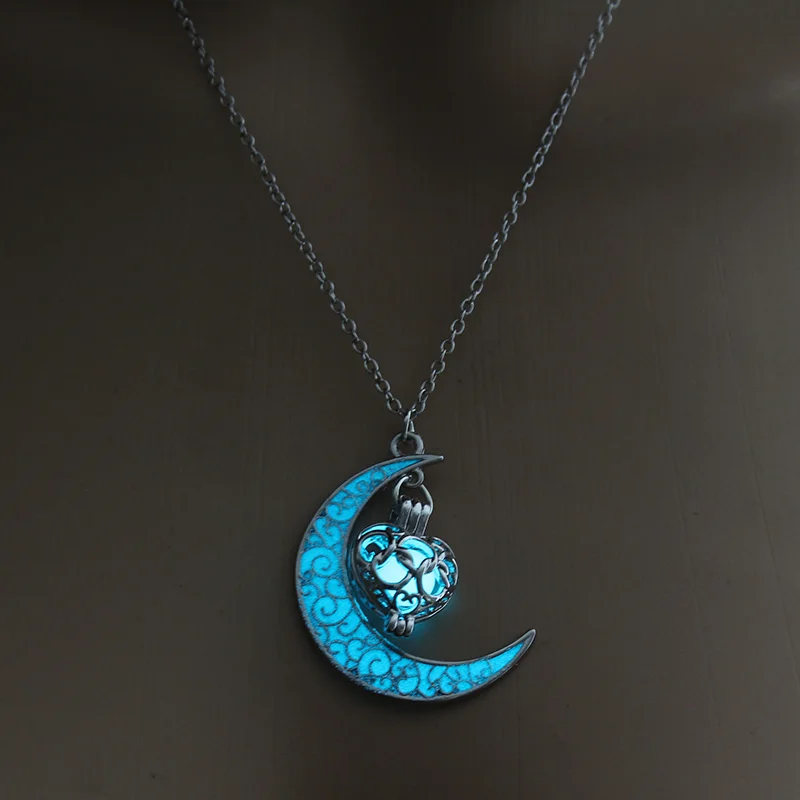 Ожерелье в форме сердца и Луны, светящиеся в темноте, 3 цвета, сере...