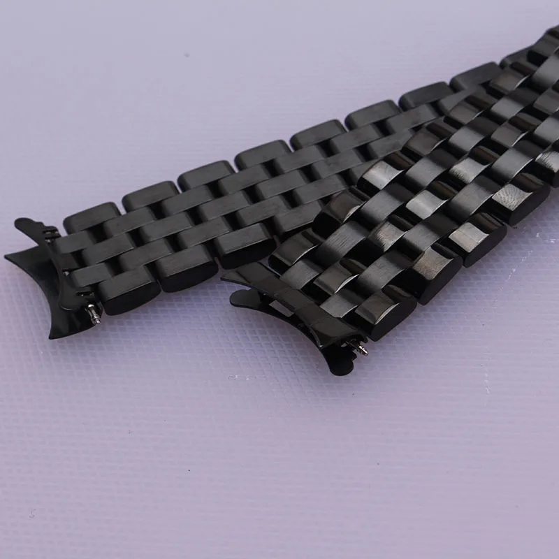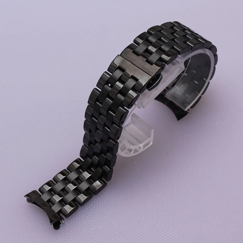 16 мм 18 мм 20 мм 22 мм 24 мм ремешок для часов black Depolyment металлический браслет из нержавеющей стали обычные изогнутые концы плоские концы