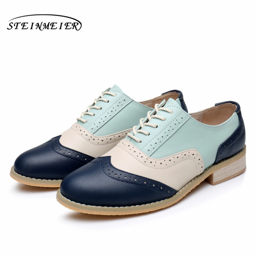 Туфли-оксфорды женские из натуральной кожи, винтажные Лоферы ручной работы на плоской подошве, на шнуровке, Повседневная Коричневая фотообувь для женщин