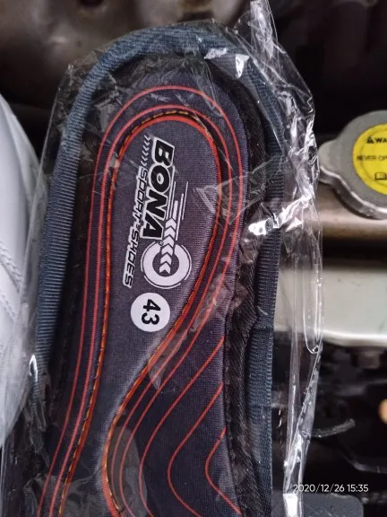 Эта уже 3я пара Боны в этом магазине. Нормальный продавец, всегда всё в цвет и в размер! Бона что Питерская, что китайская ходят одинаково. В этой модели у меня после бега по ракушке подъём стирается, на подошве. Потому что резина. На 1.5 года хватает. Доставка 13 дней, 5post в Краснодарский край. Бона не маломерит ☝️