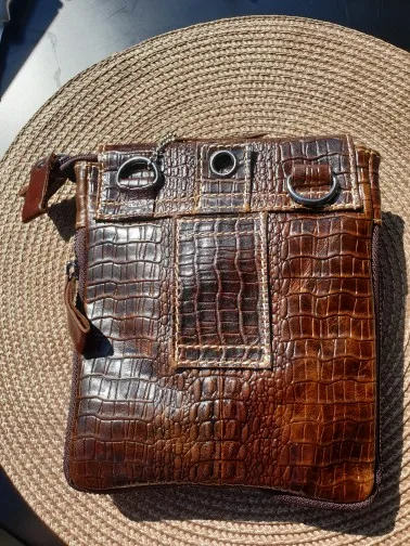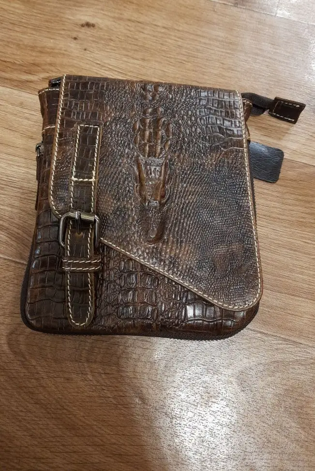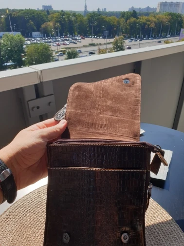 Сумка пошита аккуратно. Кожа(если это конечно кожа, а не прессованный кожаный продукт) плотная, не тонкая, сумка держит форму. Боковая молния растегивается, так можно увеличить ширину сумки на пару см, но носить будет неудобно-зубчики молнии наверняка будут цепляться за одежду. Если сравнить с сумками, которые продаются на каждом углу (на фото есть сравнение), то по размеру меньше и тоньше. Телефон, паспорт, бумажник или портмоне, зажигалка-больше не поместится ничего. Посылку ждала 2 месяца (в Беларусь). Ожидала худшего, а так вроде и ничего.