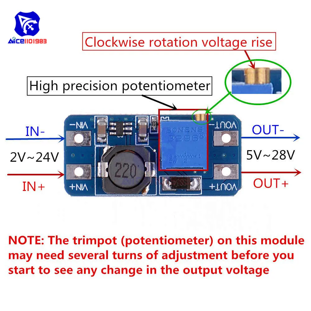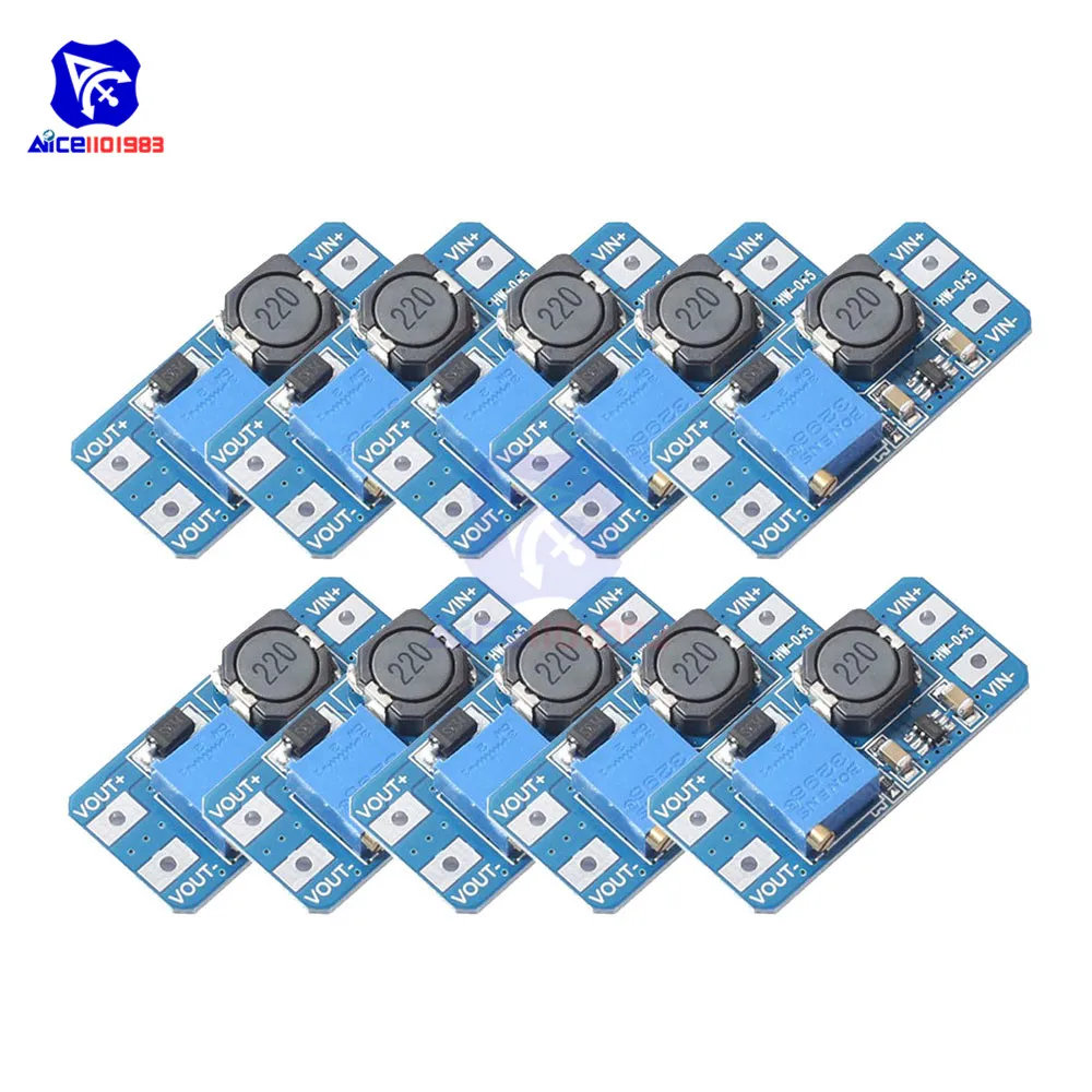Повышающий преобразователь постоянного тока diymore, 10 шт.лот, модуль питания постоянного тока от 2 -24 В до 5 в-28 в, 2 А с регулируемой обрезкой