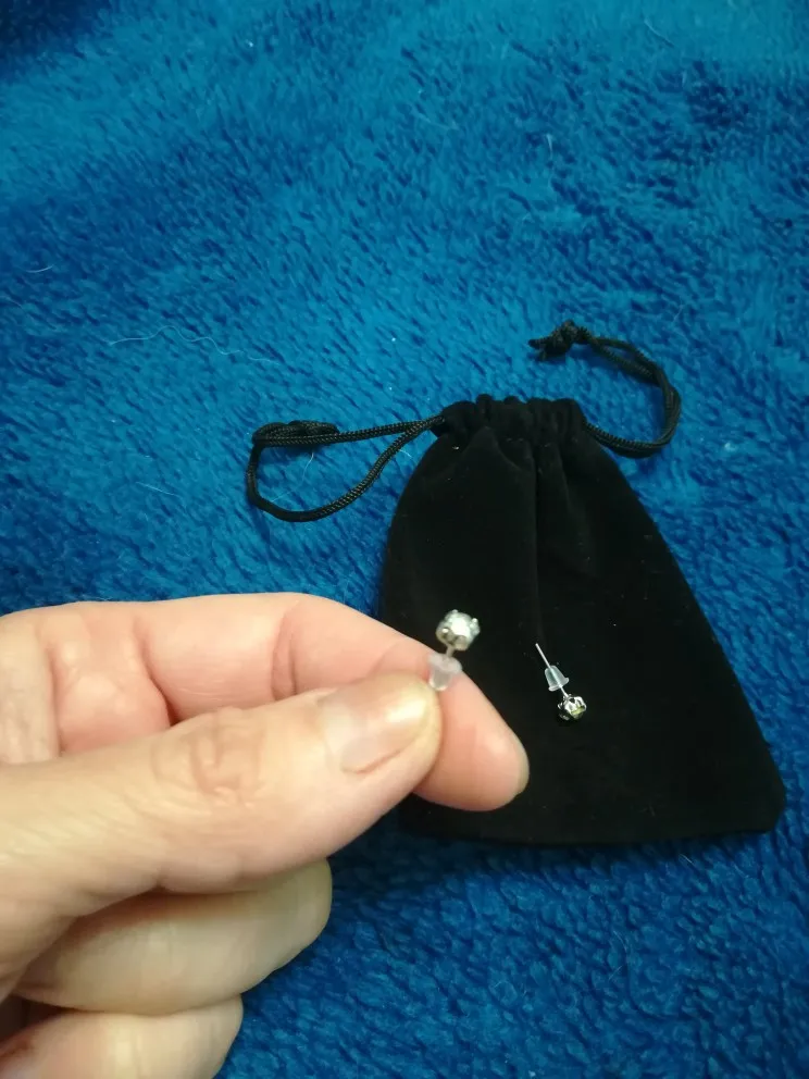 простань красивая продавец положил подарочек сережки гвоздики в мешечке приятно спасибо