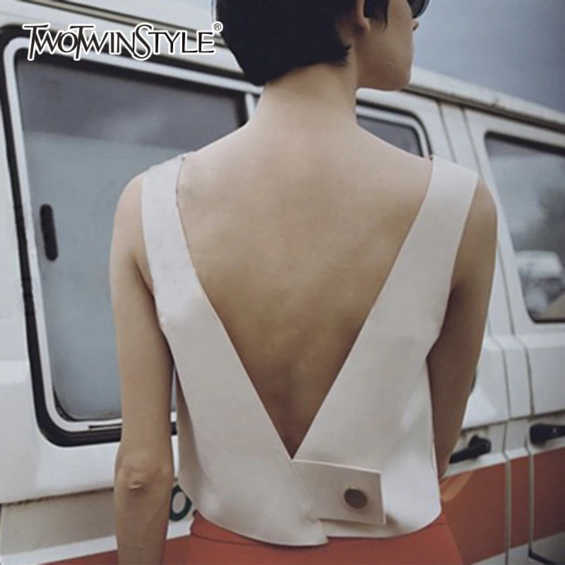 Женский жилет с открытой спиной TWOTWINSTYLE, весенний базовый пуловер без рукавов с V-образным вырезом, большие размеры, 2020