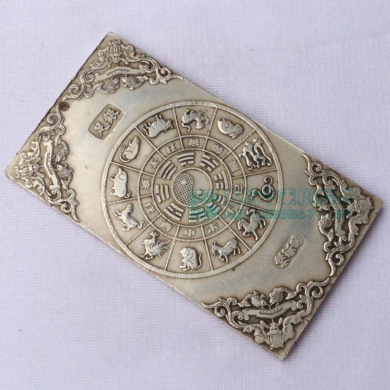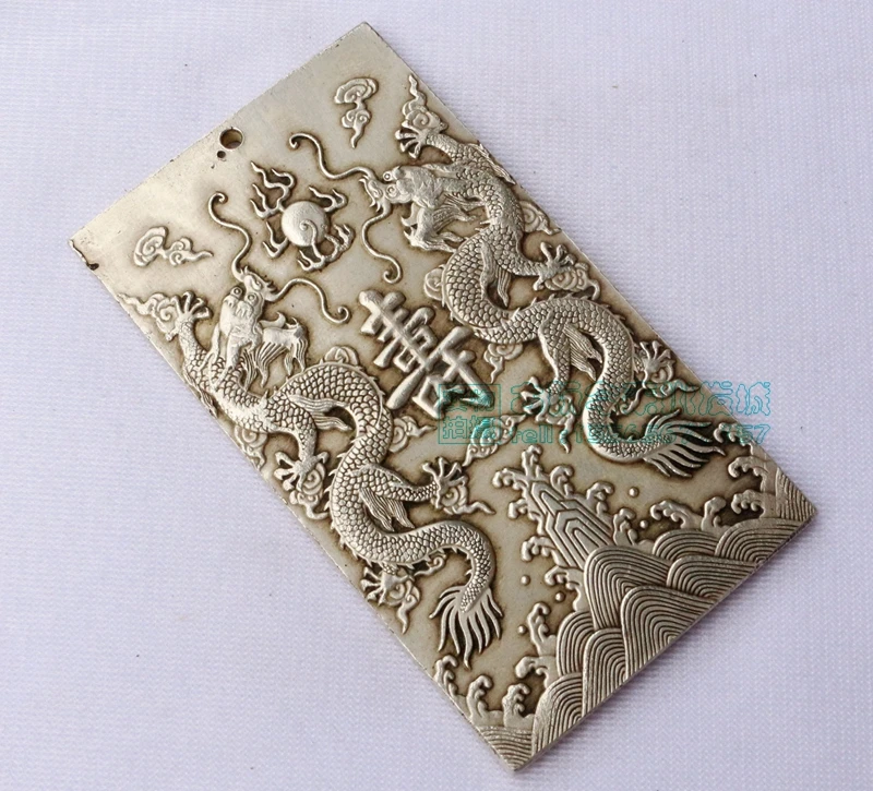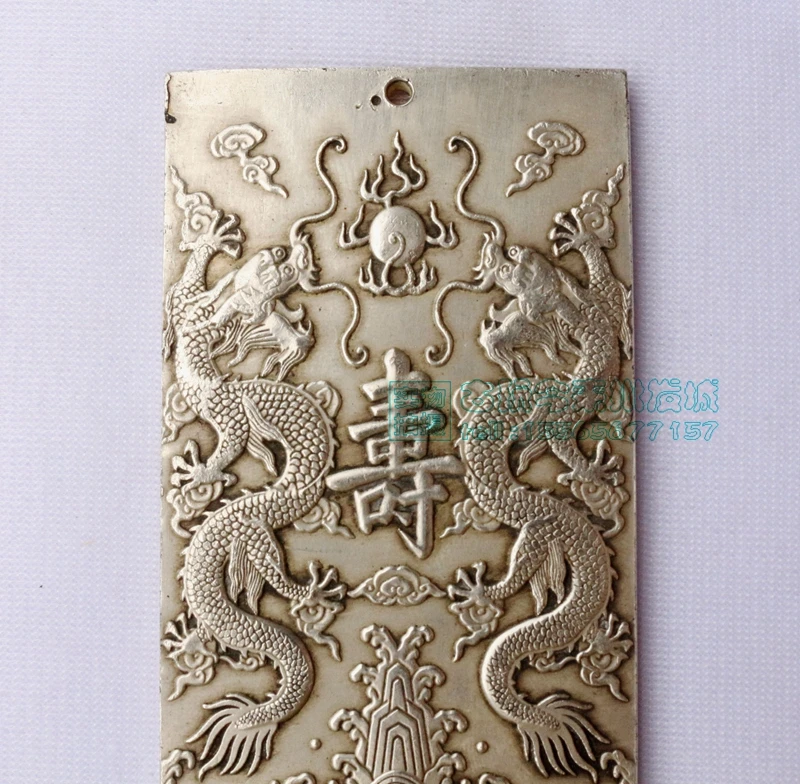 Китайский тибетский серебристый слитка танка фэншуй Ssangyong празднование статуя долголетия амулет на талию бирка, подвеска металла ручной работы