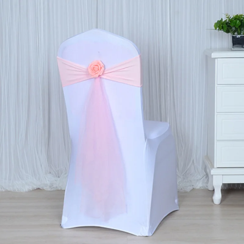 Стул из спандекса, 12 цветов, лента из лайкры, с розовым шаром, лента из органзы искусственный цветок, эластичная, подходит для всех стульев, для свадьбы