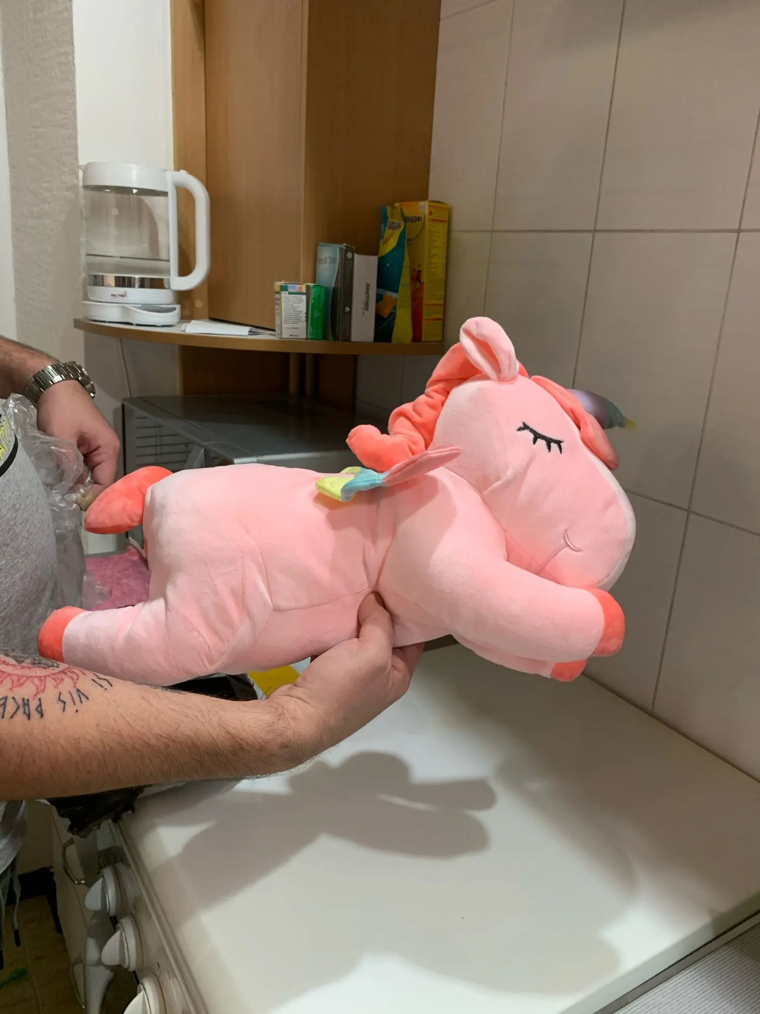Единорог прибыл очень скоро, это так же, как на фото, он очень мягкий и хорошо сделан. Моей девочке понравилось, я повторю, но он больше