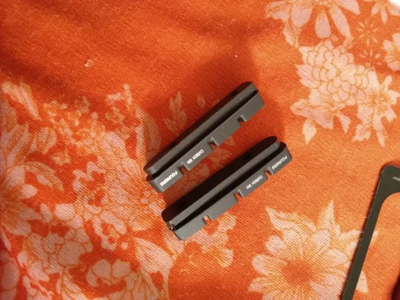 Prese x cerchi in carbonio. Frenata ottima! Decisamente di gran lunga superiore rispetto ai pattini in sughero Dura Ace... Oggi la prima prova e se alla prossima uscita si comporteranno ancora così le riprendo!