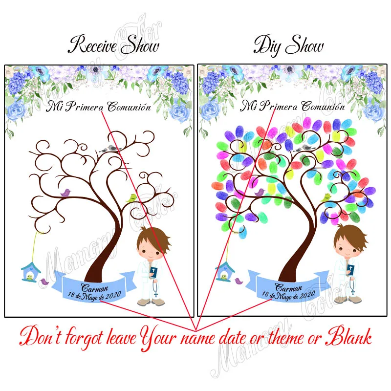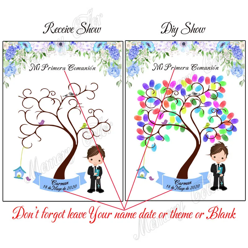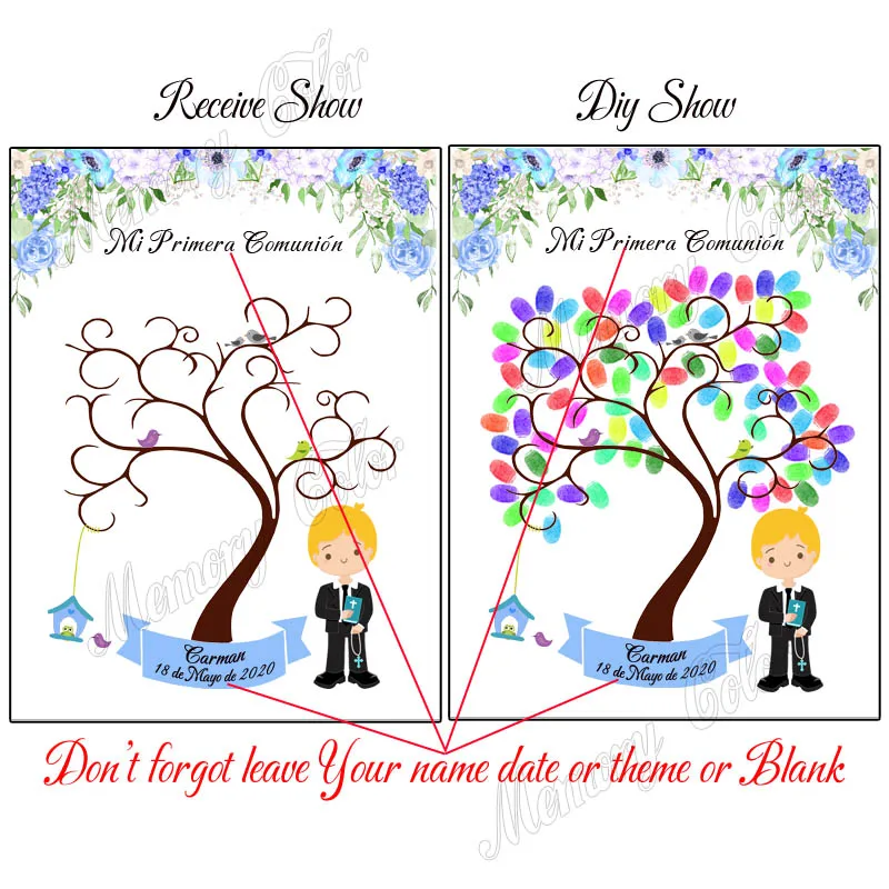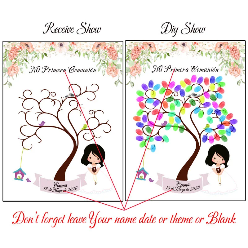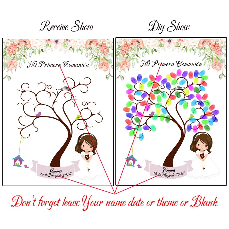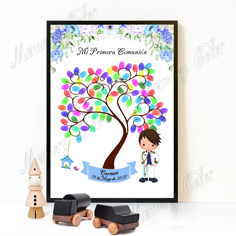 Персонализированный сувенир с именем даты первого причастия для детей, подарок Гостевая книга с отпечатками пальцев "сделай сам" для примера, праздничный Декор