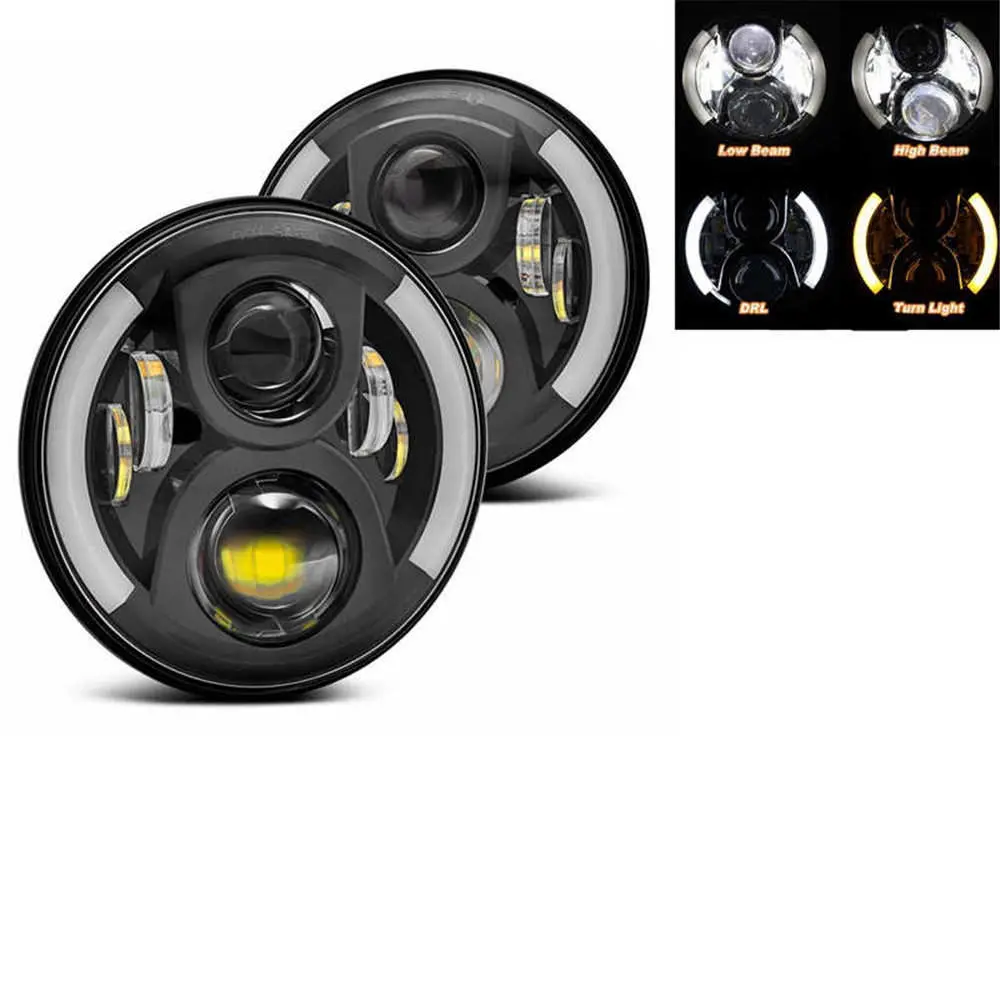 Для УАЗ 4x4 Jungle Hunter вездеходная внедорожная MPV 7-дюйсветодиодный ная фара halo DRL и желтый поворот сигнальная фара для Lada 4x4 urban Niva