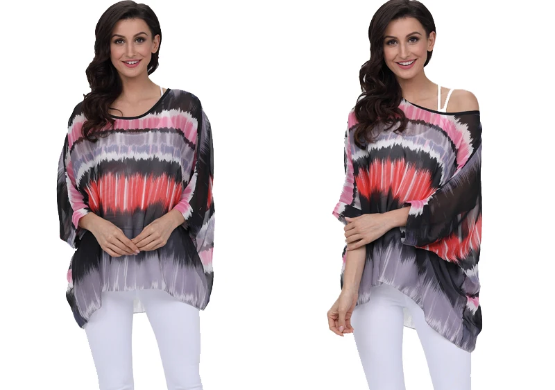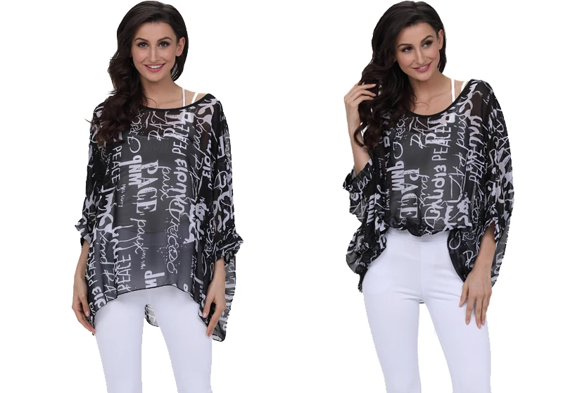 Блузка женская шифоновая, с рукавами летучая мышь, размера плюс, 4XL, 5XL, 6XL, 2018