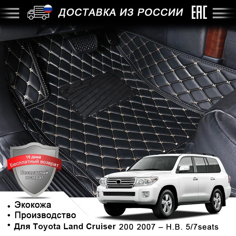 АВТОКОРОНА Коврики в машину на пол Детали интерьра 3д коврики из экокожи для Toyota Land Cruiser LC200 2007 - 2020. 5 мест 7 мест кожа Коврики интерьер автомобиля коврики российского производства из Иркутск