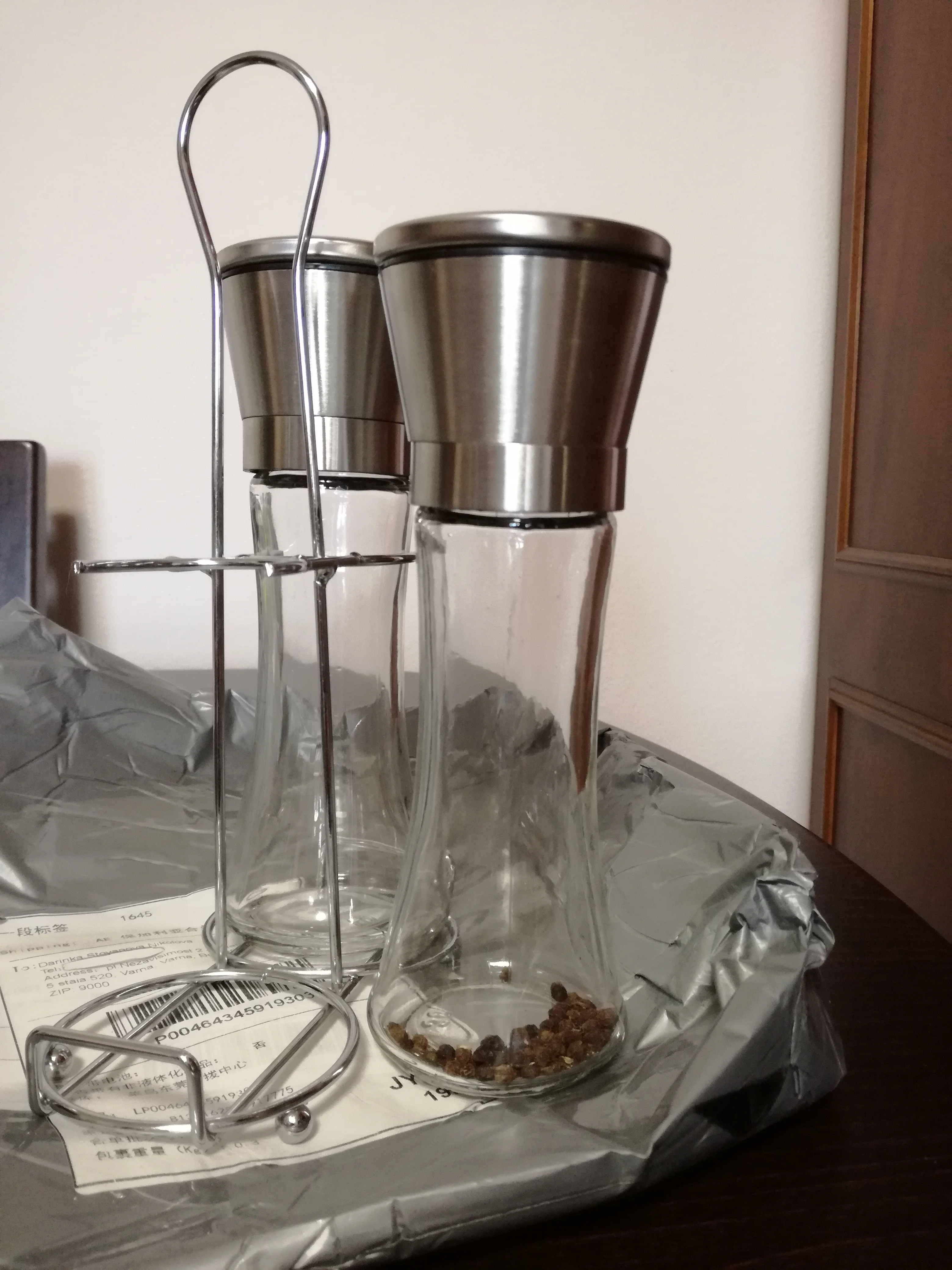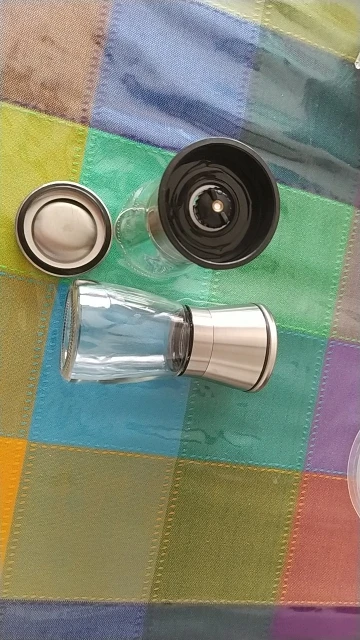 Мельницы реально большие, думал, меньше будут.Упаковка отличная. На стекле колб стоят цифры 02 и 05. Подозреваю, что это величина помола. Пока не молол.