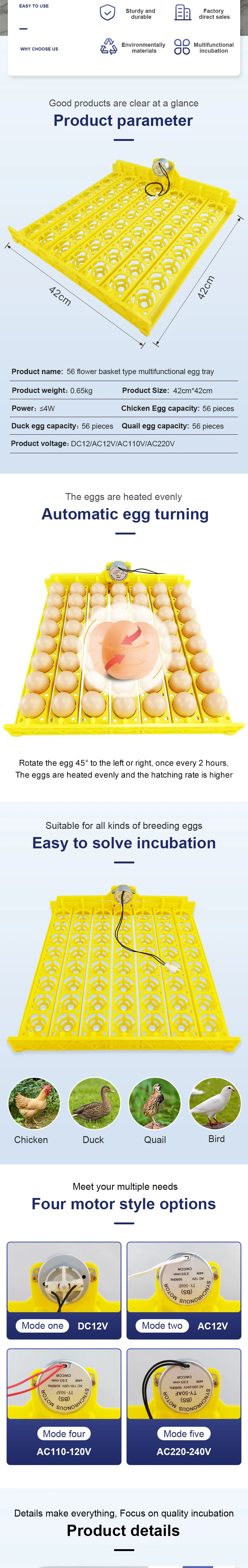 Инкубатор для птицы, поворотный лоток для 56 яиц, для цыплят, уток и других птиц