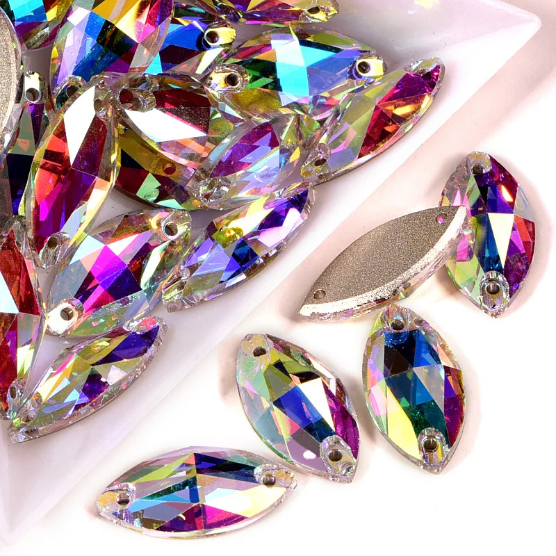 AAAAA качество 4 размера Navette формы Хрустальное стекло пришивные стразы плоская спинка Стразы для украшения платья B0936