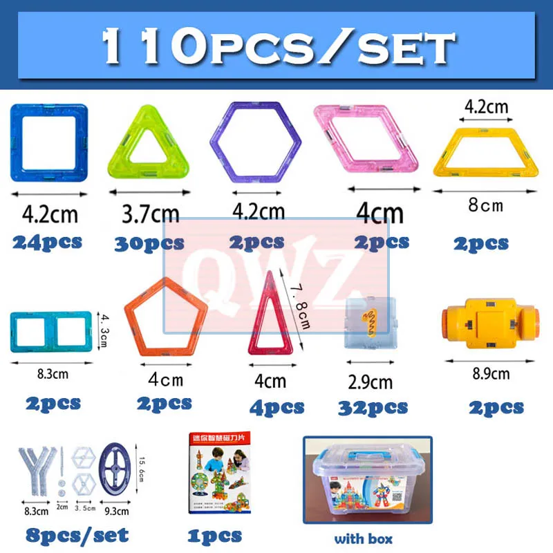 Магнитный мини-конструктор QWZ, 110 шт., модель и конструктор, пластиковые магнитные блоки, обучающие игрушки для детей, подарок