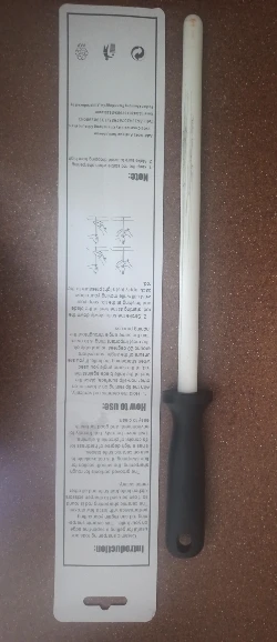 Отличный мусат, давно такой хотел. Здорово подьедает кромку лезвия, для подведения кромки надо 5 -7 проходов. Пришёл целый, отлично упакован, немного смущают поперечные трещины на теле мусата, но по виду они производственные. До МО за месяц.