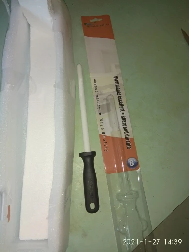 Мусат понравился. Точит хорошо. Взял 8 дюймов, по длине нормально, но 10 дюймов было бы удобней. Упаковано супер. Доставка около месяца.