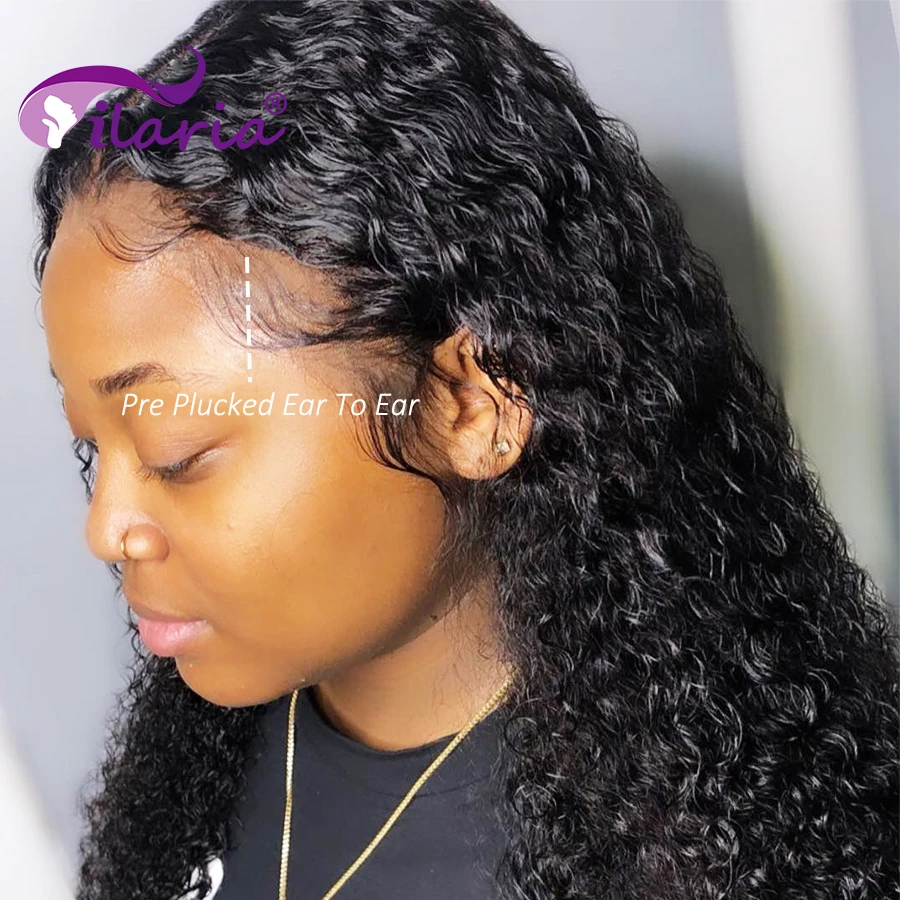ILARIA бразильские кудрявые человеческие волосы с закрытием с детскими волосами глубокая волна 13x4 уха до уха Кружева Фронтальные предварительно выщипанные отбеленные узлы