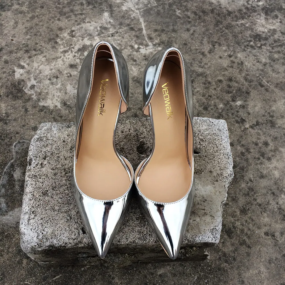 Veowalk блестящие серебристые женские туфли-лодочки на высоком каблуке 12108 см