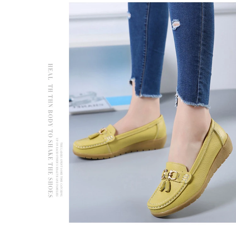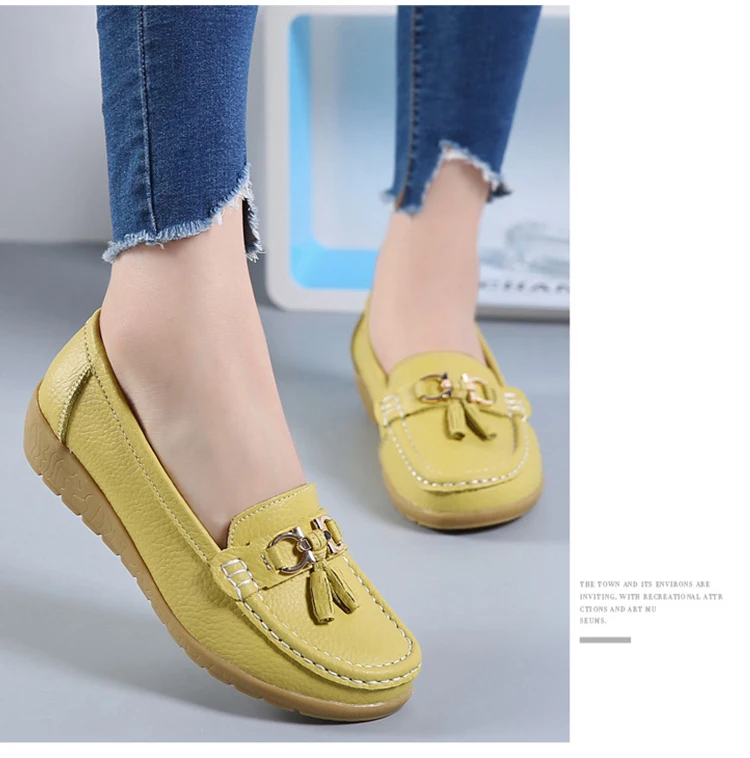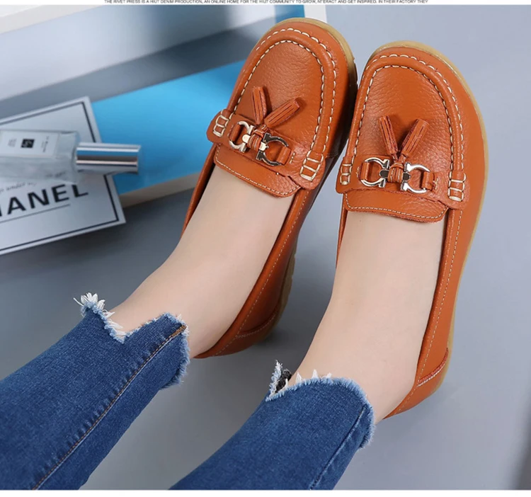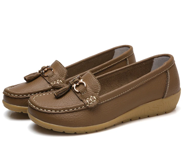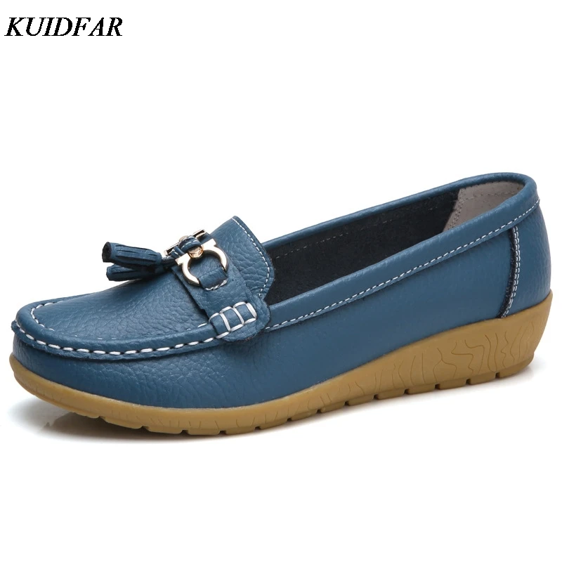 Туфли KUIDFAR женские из натуральной кожи, Повседневная дышащая обувь на плоской подошве, без застежки, однотонные лоферы, размера плюс